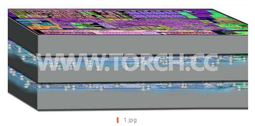Honeywell制冷劑也是一種介電質(zhì),因此可以在芯片之間泵送,而不需要金屬元件的絕緣,包括矽穿孔(TSV)。微流體通道可以透過(guò)單個(gè)芯片執(zhí)行,涵蓋全部的3D堆疊芯片。3D芯片堆疊中非腐蝕性制冷劑的最佳使用是將CMOS芯片削薄到50微米厚,并在其間留下100微米的間隙。圍繞邊緣的中空矩形間隔物包含堆疊中的制冷劑,每一側(cè)的接頭在一側(cè)泵入液體,并在另一側(cè)移除其蒸汽。接著,蒸汽通過(guò)蒸餾器,讓制冷劑返回液體形式以便泵送回芯片堆疊中。